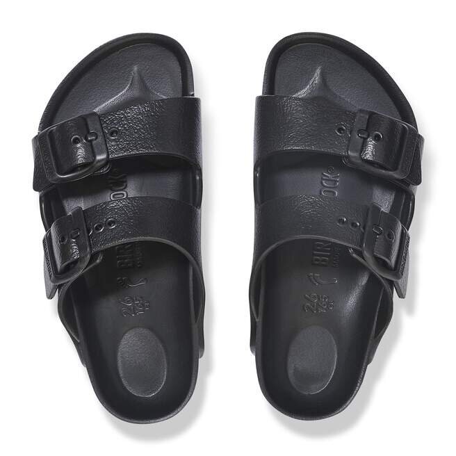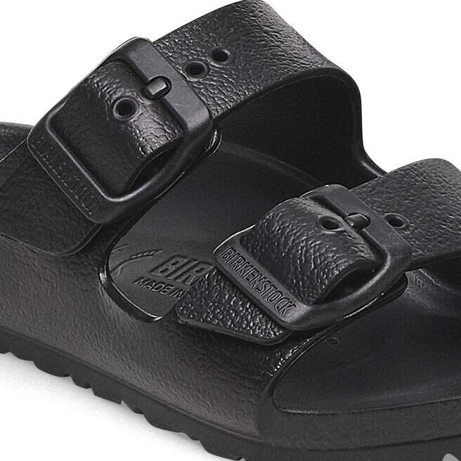 Den legendariska designen med två remmar från Birkenstock – Arizona för barn. Denna sandal är inspirerad av Cork Original och tillverkad av ultralätt och mycket flexibelt EVA. Dessa sandaler är stötdämpande, vattentäta och hudvänliga. Anatomiskt formad Birkenstock-fotbädd tillverkad av EVA
