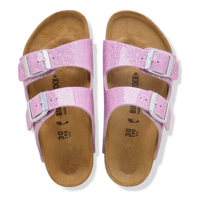 Den legendariska designen med två remmar från Birkenstock – Arizona för barn. Ikonisk stil kompletterad med den karakteristiska komforten från Birkenstockens fotbädd. Visas i ”Cosmic Sparkle” Birko-Flor®.
