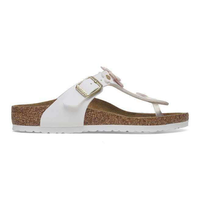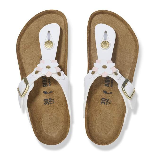 Blommönster inspirerar barnen att ha kul utomhus i vår ikoniska Gizeh-sandal. Modellen bygger på det ursprungliga Birkenstock®-stödet med en formad fotbädd för långa dagar av lek.