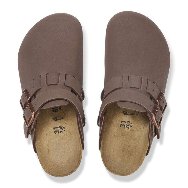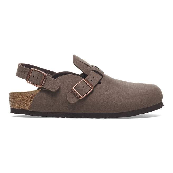 Birkenstock Kay är en klassisk träsko med en justerbar hälrem med spänne som kan vridas bakåt för en säkrare passform. Ovansidan är tillverkad av det hudvänliga, slitstarka syntetmaterialet Birkibuc®.