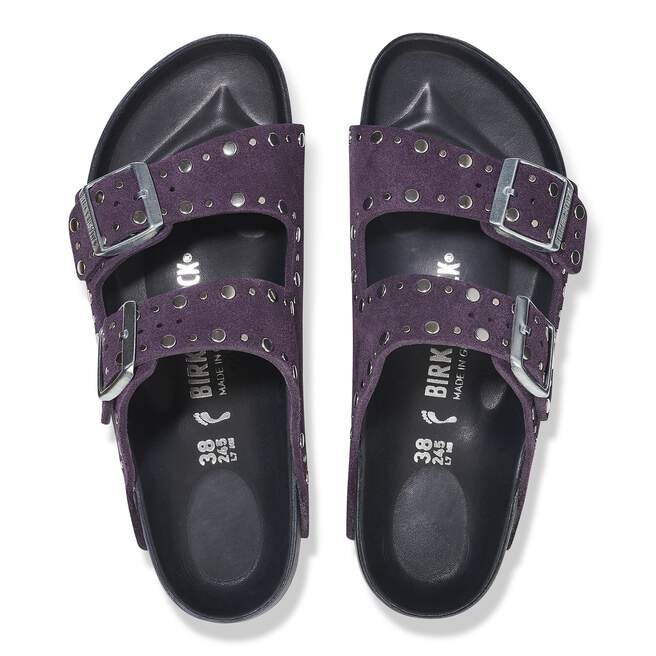 Arizona-sandalen är en ikon med tidlös design och legendarisk komfort som har definierat stilen sedan 1973. Metallnitar pryder den klassiska mockaöverdelen i ett iögonfallande mönster, noggrant placerade för att lämna undersidan slät för bekväm användning. Den vilar på en utsökt fotbädd helt fodrad med mjukt läder för en stödjande, lyxig känsla.
