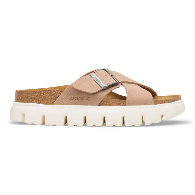 Birkenstock Siena har ett raffinerat utseende. Korsande remmar ger sandalen dess unika och speciella utseende. Här presenterar Papillio modellen med två remmar och en stilfull plattformssula med extra djupa mönsterlinjer. Avfasningarna fram och bak ger maximal gångkomfort. Överdelen är tillverkad av särskilt mjukt mocka som omsluter foten som en andra hud.