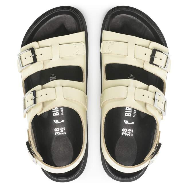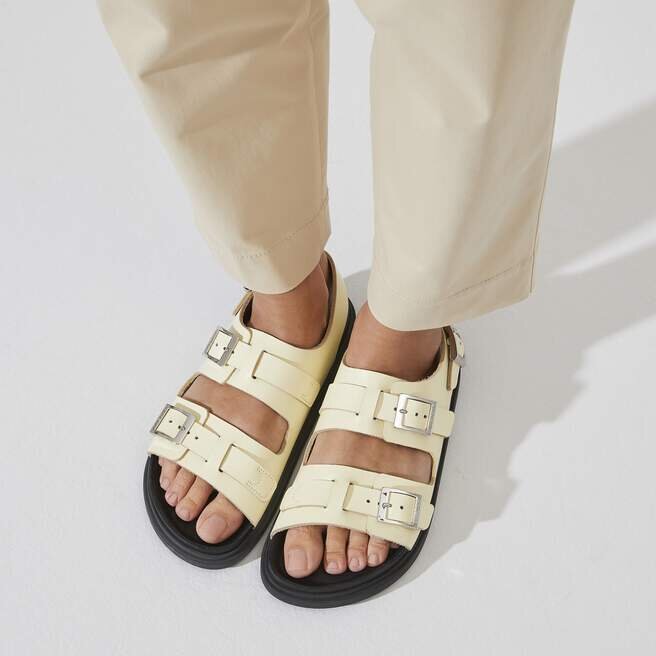 Fotbäddsfodret och fotbäddens ytterkant på Birkenstocks Exquisite-modeller är klädda i mycket mjukt och smidigt nappaläder.