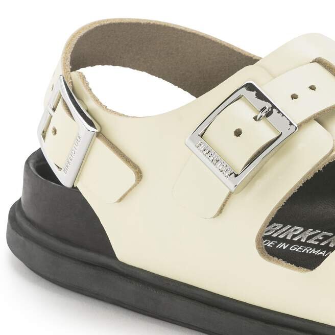Naturläder känns igen på sin obehandlade yta. Birkenstock behandlar medvetet inte ytstrukturen och andra karakteristiska drag. Birkenstock använder robust läder med en tjocklek på 2,8 till 3,2 millimeter som överdel.