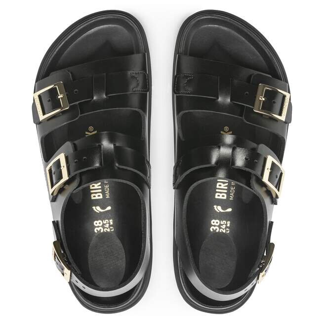 Naturläder känns igen på sin obehandlade yta. Birkenstock behandlar medvetet inte ytstrukturen och andra karakteristiska drag. Birkenstock använder robust läder med en tjocklek på 2,8 till 3,2 millimeter som överdel.