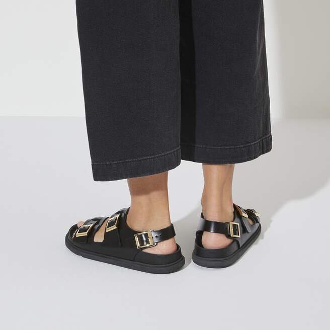 Fotbäddsfodret och fotbäddens ytterkant på Birkenstocks Exquisite-modeller är klädda i mycket mjukt och smidigt nappaläder.