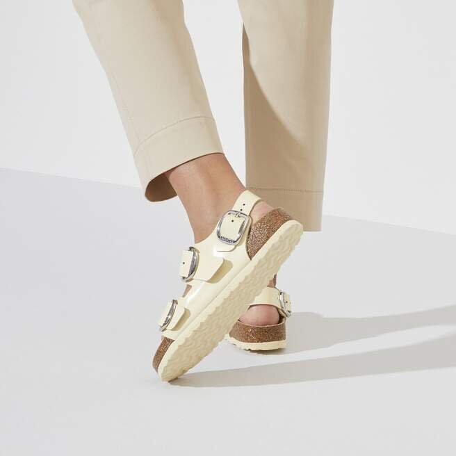 Maximalt grepp, stabilitet och perfekt passform! Birkenstock Milano erbjuder allt detta tack vare sin kompakta design med ankelband. Versionen Big Buckle har ett stort, elegant spänne. Den halvfodrade fotbädden är helt fodrad med mjukt Piumato-läder, vilket gör den exceptionellt bekväm. Ovansidan är tillverkad av högkvalitativt naturläder med en glansig lackbeläggning.