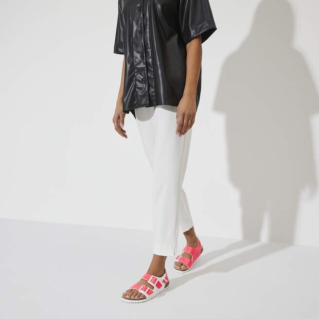 Milano står i rampljuset. En högblank yta ger glans åt denna djärva, streetinspirerade sandal – tillverkad veganskt i slitstarkt Birko-Flor®. En justerbar bakrem ger dig extra säkerhet och en passform som sitter precis rätt. Komplett med en Original Footbed i kork och latex som formar sig efter dig för anpassat stöd.