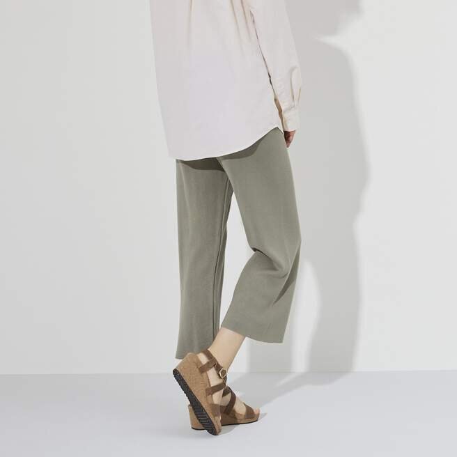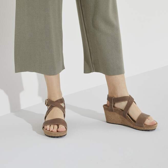 Sibyl-sandalen från Papillo är en sandal med kilklack och smala remmar samt eleganta ringknäppen. Ovansidan är tillverkad av extra tjockt, oljat nubuckläder.