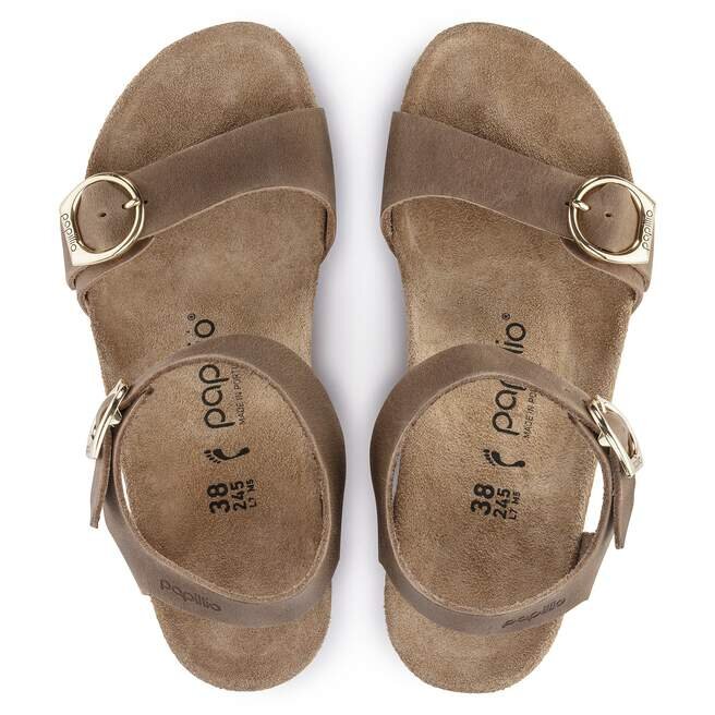 Soley-sandalen med kilklack från Papillo är både snygg och bekväm. Den har en ankelrem och eleganta ringknäppen, vilket gör den till en moderiktig men otroligt bekväm sko. Övre delen är tillverkad av extra tjockt, oljat nubuckläder.