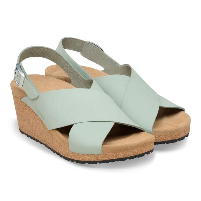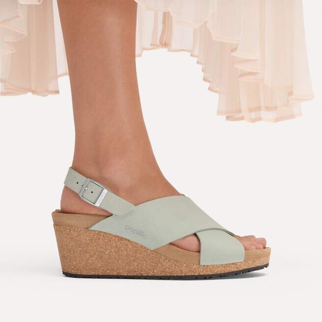 Sandalen Samira Crossed-Strap från Papillio har en bakre rem och sofistikerade detaljer: klacken förlänger benet medan den eleganta remmen av hudvänligt material skämmer bort foten. Ovansidan är tillverkad av högkvalitativt, mjukt nubuckläder som har ett naturligt, rustikt utseende.