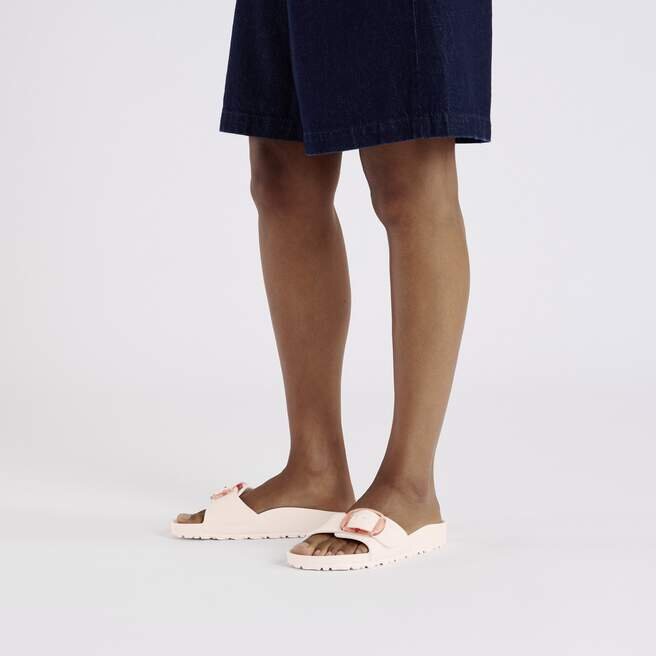 Detta är en ny och modern tolkning av Birkenstocks klassiker Madrid. Denna version har vårt populära Big Buckle tillverkat av ett rostfritt syntetmaterial och imponerar med sin hållbarhet och minimalistiska design. Den är inspirerad av kork-sandalen och tillverkad av det ultralätta och mycket flexibla syntetmaterialet EVA. Det högkvalitativa, luktneutrala EVA-materialet har testats för skadliga ämnen och kombinerar många positiva egenskaper: det är mycket lätt, mycket elastiskt, stötdämpande, vattenavvisande och hudvänligt.