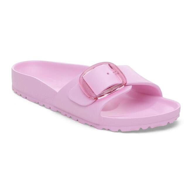 Detta är en ny och modern tolkning av Birkenstocks klassiker Madrid. Denna version har vårt populära Big Buckle tillverkat av ett rostfritt syntetmaterial och imponerar med sin hållbarhet och minimalistiska design. Den är inspirerad av kork-sandalen och tillverkad av det ultralätta och mycket flexibla syntetmaterialet EVA. Det högkvalitativa, luktneutrala EVA-materialet har testats för skadliga ämnen och kombinerar många positiva egenskaper: det är mycket lätt, mycket elastiskt, stötdämpande, vattenavvisande och hudvänligt.