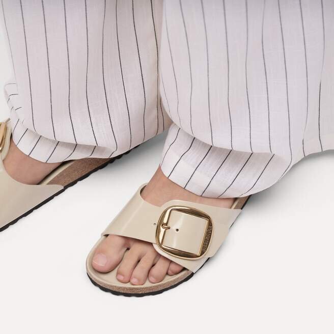 Madrid har varit en ikon sedan 1963 och har omdefinierat sandalen med sin konturerade fotbädd och en enda, sofistikerad rem. Ett glänsande stort spänne pryder modellen och sticker ut mot det glansiga naturläder. Modellen bygger på vår ursprungliga konturerade fotbädd, som vi har klätt i ultramjukt läder för en lyxig upplevelse varje gång.