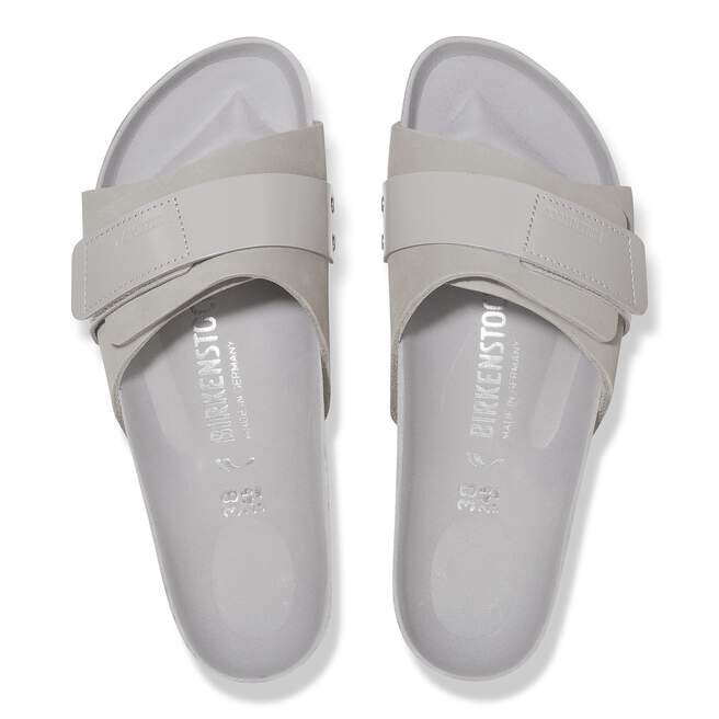 Minimalistisk design för maximal komfort när du är på språng. Oita-sandalen har en ovandel i nubuckläder som smidigt omsluter foten och hålls på plats av en högblank rem för en elegant finish. En dubbel kardborreknäppning låter dig finjustera passformen inifrån och ut. Fotbädden i mjukt läder ger en lyxig känsla vid varje steg.