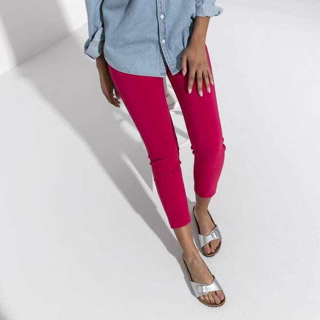 Birkenstock Madrid är den äldsta modellen i familjen, vilket gör den till en verklig klassiker. Den lanserades som en ”gymnastiksandal” för ett halvt sekel sedan, och denna enkla modell med en rem har blivit en fast favorit inom modevärlden. Denna version har en metallisk glanseffekt. Ovansidan är tillverkad av det hudvänliga, slitstarka syntetmaterialet Birko-Flor®.