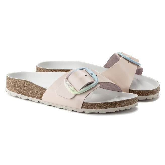 Den ursprungliga Birkenstock-sandalen. En rem, ett spänne och en konturerad fotbädd av kork kombineras mästerligt för att skapa Madrid. Denna version har vårt populära stora spänne med ombre-effekt – en färgglad pastellaccent på denna annars diskreta sandal. Den färgkoordinerade, halvutsökta fotbädden är helt fodrad med mjukt Piumato-läder. Övre delen är tillverkad av högkvalitativt anilinläder.