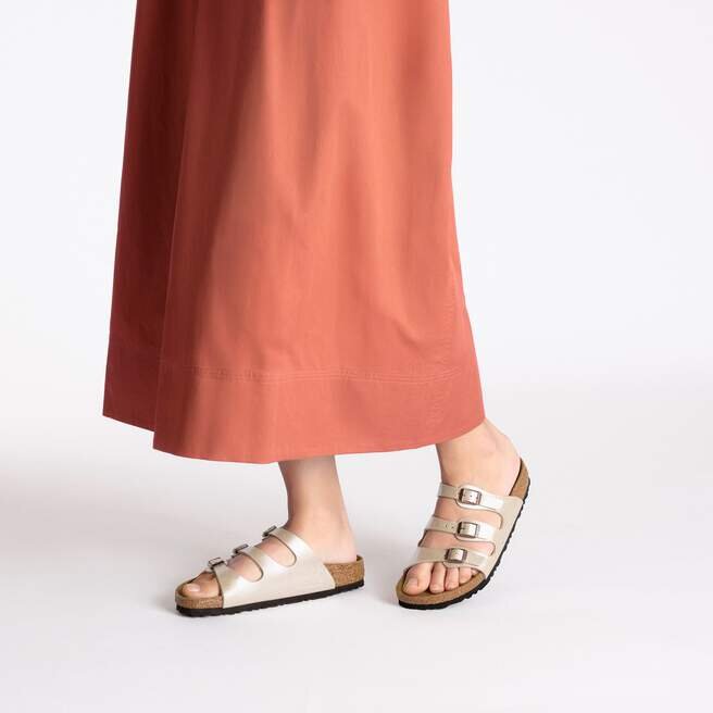 Spotlight riktas mot Florida Sandal. Präglad, skimrande Birko-Flor® reflekterar ljuset precis rätt med en iögonfallande struktur. Denna sandal är designad kring vårt ursprungliga konturerade fotbädd för stöd och är redo att jaga solen när du är det..