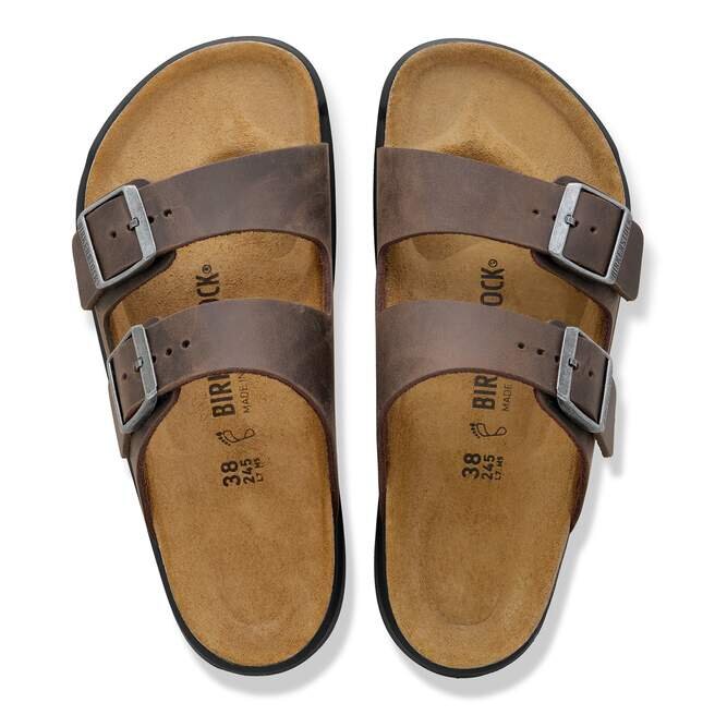 Arizona-sandalen, omgjord för vardagens äventyr. En PU-sula är slitstark och flexibel, med ett robust mönster för förbättrad grepp så att du kan gå utanför allfarvägen om du vill. En ovandel i oljat läder får en klassisk finish ju mer du bär den. Med en konturerad fotbädd som ger stöd när du är på språng.