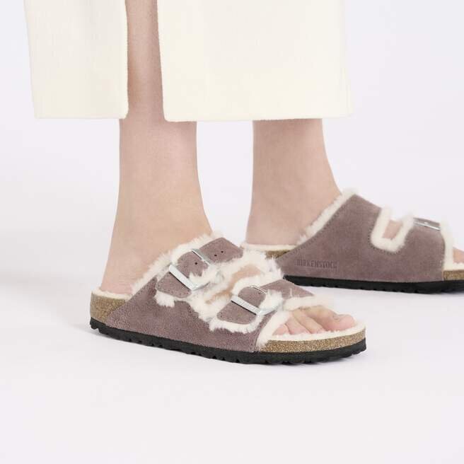 Arizona-sandalen, gjord för att vara mysig under de kallare månaderna. Klassisk mocka ger en sammetslen känsla som fortsätter på insidan. Modellen är helfodrad med äkta fårskinn, ända ner till den ursprungliga konturerade fotbädden. En mjuk, stödjande landning varje gång.