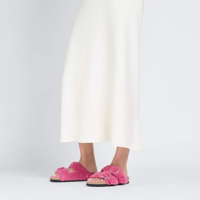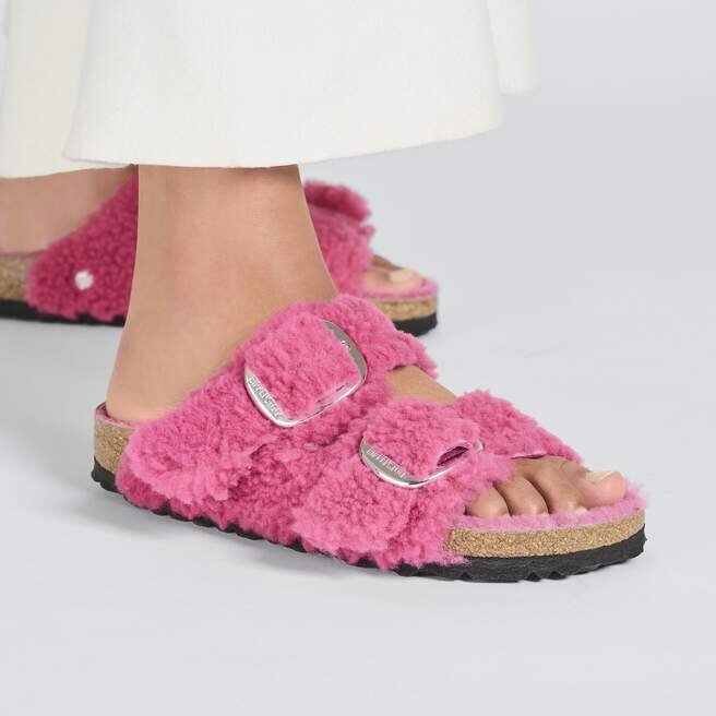 Gör den extra mysig. Oh-So-Fluffy Teddy Shearling och överdimensionerade spännen förvandlar Arizona’s ikoniska design med två remmar till säsongens mest iögonfallande stil. Teddy Shearling fyller även fotbäddens foder för den ultimata mysiga känslan. Komplett med klassiska Birkenstock-designelement, som en konturerad fotbädd i kork och latex som formar sig efter dig när du bär den.