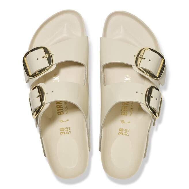 Den legendariska designen med två remmar från Birkenstock med förstärkt spänne – Arizona Big Buckle. Big Buckle-versionen har ett stort, elegant spänne som skapar en djärv men minimalistisk design. Den halvfodrade fotbädden är helt fodrad med mjukt Piumato-läder, vilket gör den exceptionellt bekväm. Ovansidan är tillverkad av högkvalitativt naturläder med en högblank yta.