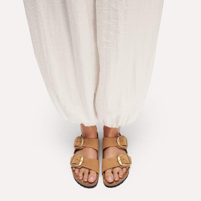 Birkenstock Arizona är en äkta klassiker som har glatt både män och kvinnor i årtionden. Denna enkla sandal med två remmar står för tidlös design och har länge haft kultstatus tack vare sin komfort. Versionen med Big Buckle har ett stort, elegant spänne – en fantastisk, iögonfallande detalj på denna annars diskreta sandal. Denna modell har ett feminint blommönster på fotbädden. Ovansidan är tillverkad av högkvalitativt, mjukt nubuckläder som har ett naturligt, rustikt utseende.