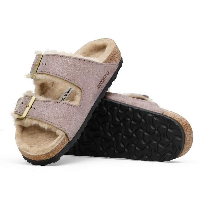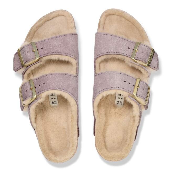 Arizona-sandalen gjord mysig för de kallare månaderna. Mjukt fodrad med äkta fårskinn, med skimrande mocka som mjukt fångar ljuset. Designad på en originalformad fotbädd för en bekväm landning varje gång.