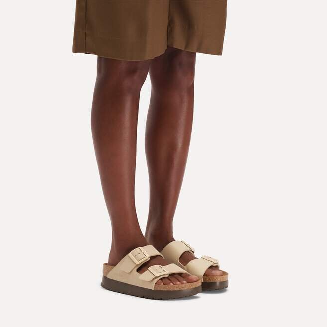 En flexibel plattformssula tar Arizona-sandalen som är en klassiker till nya höjder – och din stil med den. Slitstarkt Birko-Flor® och ett fotbäddsfoder i mikrofiber ger dig ett lyxigt veganskt alternativ som sticker ut från mängden. Denna Papillio® by Birkenstock®-modell vilar på en konturerad fotbädd utformad för att ge dig stöd i alla lägen.