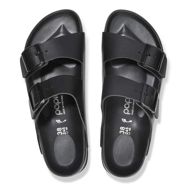 Naturläder känns igen på sin obehandlade yta. Birkenstock behandlar medvetet inte ytstrukturen och andra karakteristiska drag. Birkenstock använder robust läder med en tjocklek på 2,8 till 3,2 millimeter som överdel.