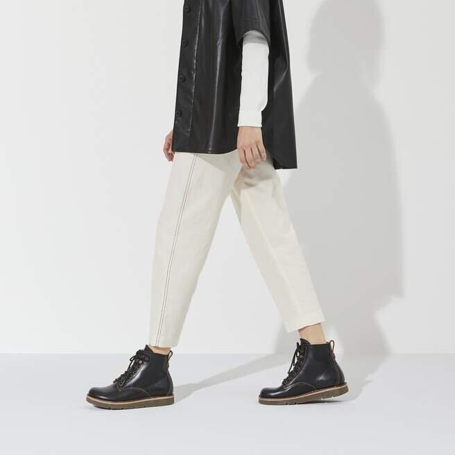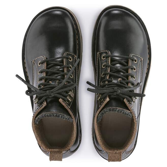 En klassisk stövla inifrån och ut. Birmingham Lace är tillverkad av förstklassigt Horween-läder och utformad för att åldras vackert med tiden och få en tydlig vintage-look. Inuti optimerar en djupblå fotbädd din komfort, med ett fuktavvisande foder och en PU-bas som anpassar sig efter din naturliga gångrörelse under långa, aktiva dagar. Birkenstock-fotbädd i djupblå färg för stöd under foten