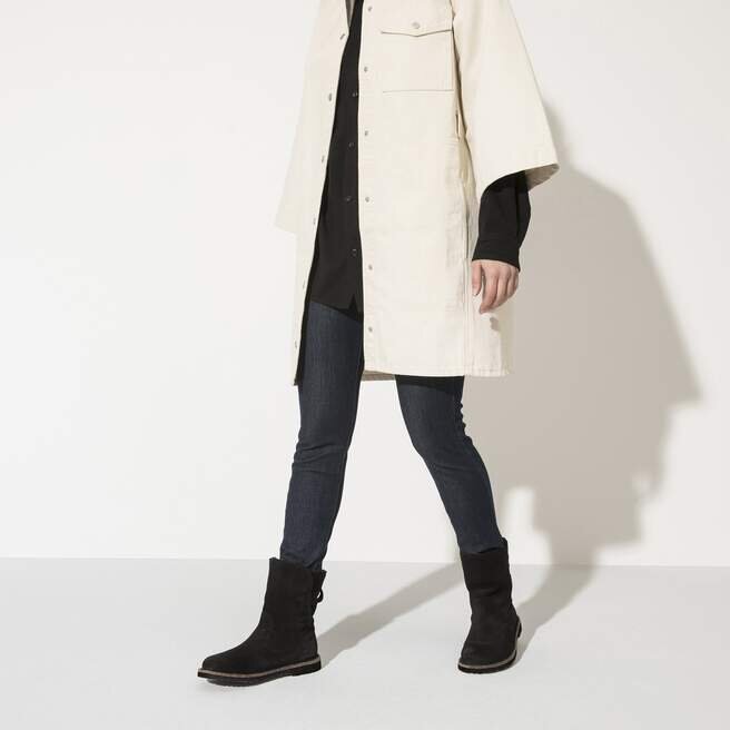 Vi presenterar den helt nya Birkenstock Uppsala. Den perfekta, mysiga, halvhöga stövlen med ett varmt foder av äkta fårskinn. Överdelen är tillverkad av extra mjukt mocka. Sulan är gjord av TR-gummi för extra grepp och hållbarhet. Dessa mångsidiga stövlar hjälper dig att hålla stilen och ge foten stöd, även under kyliga dagar.