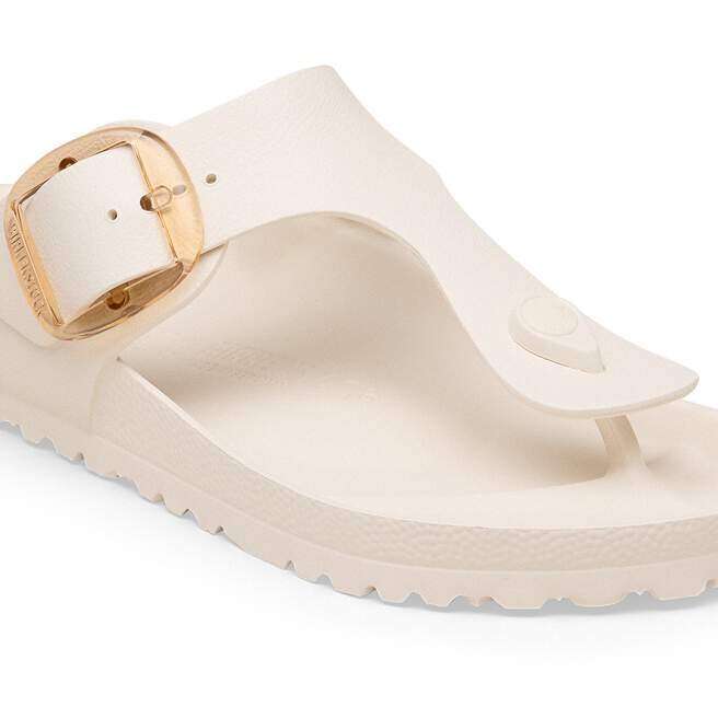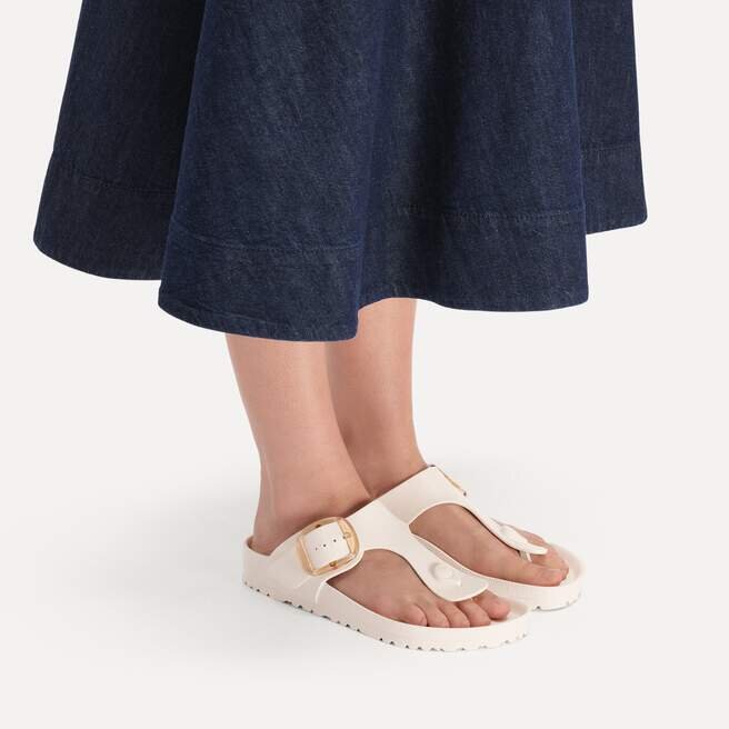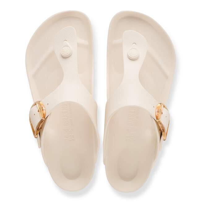 Birkenstock Gizeh är en äkta klassiker. Denna version levereras med vårt populära Big Buckle tillverkat av korrosionsbeständig plast. Den är inspirerad av kork-sandalen och tillverkad av det särskilt lätta och mycket flexibla materialet EVA. Det högkvalitativa, luktneutrala EVA-materialet har testats för skadliga ämnen och kombinerar många positiva egenskaper: Det är mycket lätt, mycket elastiskt, vattenavvisande och hudvänligt och erbjuder den komfort du har kommit att förvänta dig av Birkenstock.