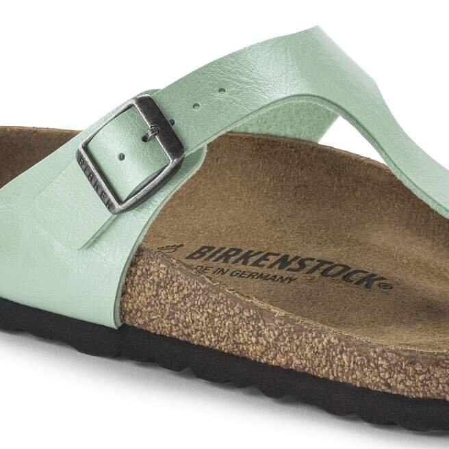 Birkenstock Gizeh ger den legendariska komforten och eleganta detaljerna till tåsandalen. En iögonfallande finish ger en speciell glans till vardagsfavoriten. Komplett med en Original Footbed i kork-latex för stöd hela dagen.