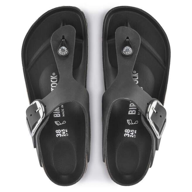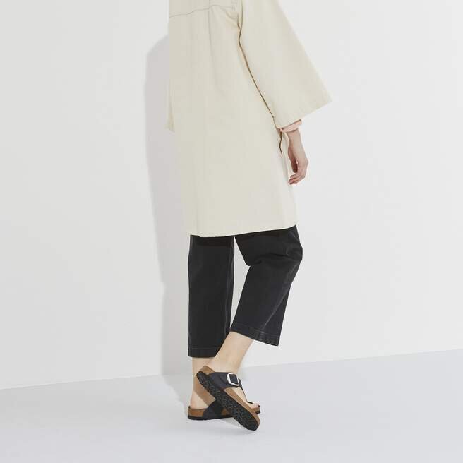 Den moderna tåsandal från Birkenstock. Gizeh är en ikonisk klassiker med signaturstöd och en raffinerad, minimalistisk stil. Versionen med Big Buckle har ett överdimensionerat spänne och ton-i-ton-foder i fotbädden. Ovansidan är av mjukt men slitstarkt oljat läder.