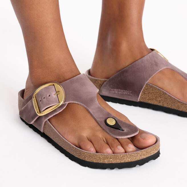 Möt den helt nya Gizeh Big Buckle. Denna klassiska tåsandal får en fräsch uppdatering med ett elegant, förstorat spänne. En feminin modell som är bekväm och lätt att bära. Fodret på fotbädden är klätt med mjukt, slätt läder och matchar skon i färg. Övre delen är tillverkad av extra tjockt, slätt läder och har en öppen kant.