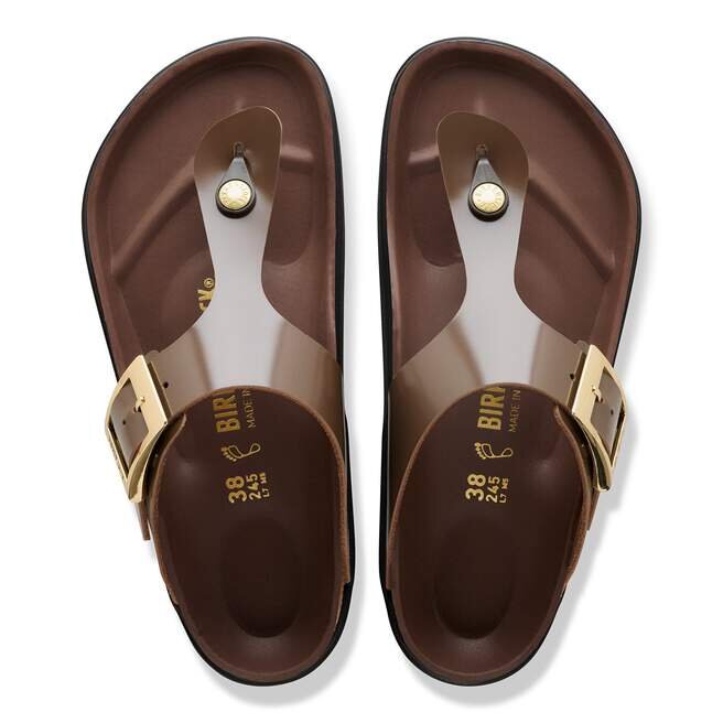 Birkenstock Gizeh är en äkta klassiker och en stilfull allroundmodell. Vår eleganta tåsandal kombinerar optimalt grepp med en minimalistisk, trendig design. Den halvfodrade fotbädden är helt fodrad med mjukt Piumato-läder, vilket gör den exceptionellt bekväm. De glänsande, välvda spännena i zamak är sofistikerade blickfång. Övre delen är tillverkad av högkvalitativt naturläder med en glänsande lackbeläggning.