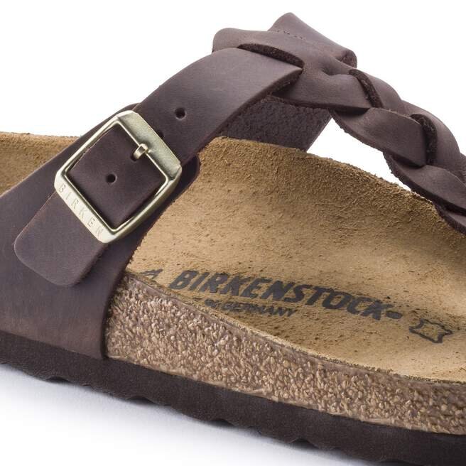 Gizeh-sandalen, med en ny twist. Det flätade, oljade lädret blir bara bättre med tiden och ger dig den där klassiska, välanvända patinan direkt från förpackningen. Den originalformade fotbädden i kork och latex skapar anpassat stöd med slitage