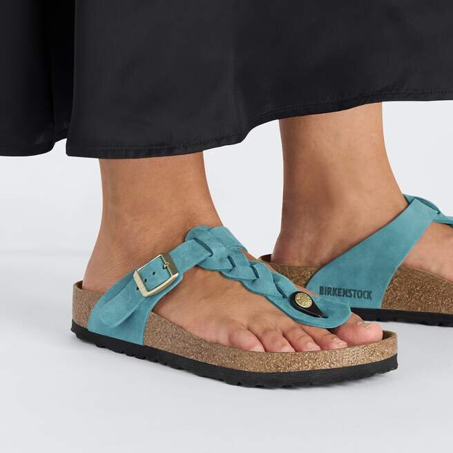 Gizeh-sandalen, med en ny twist. Det flätade, oljade lädret blir bara bättre med tiden och ger dig den där klassiska, välanvända patinan direkt från förpackningen. Den formade fotbädden i kork och latex skapar anpassat stöd med slitage