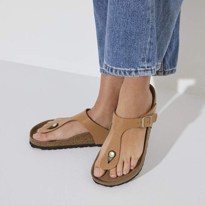 Gizeh – en modern Tåsandal från Birkenstock. Gizeh är en beprövad Klassiker med signaturstöd och en raffinerad, minimalistisk stil. Finns i veganska material, inklusive ett överdel tillverkat av det hudvänliga, slitstarka syntetmaterialet Birkibuc.