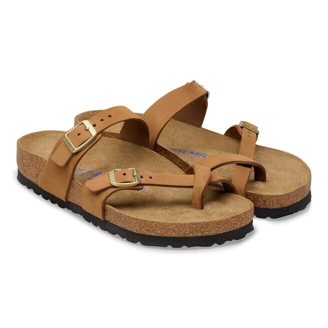 Birkenstock Mayari-tåsandal är en elegant modell med tårem. Den imponerande kombinationen av design och bärkomfort gör att modemedvetna män och kvinnor kan ta sig igenom dagen med elegans och komfort. Tack vare det extra skumlagret erbjuder den mjuka Soft Footbed-fotbädden extra komfort och skämmer bort fötterna – hela dagen lång. Ovansidan är tillverkad av extra tjockt, oljat nubuckläder med en öppen kant.