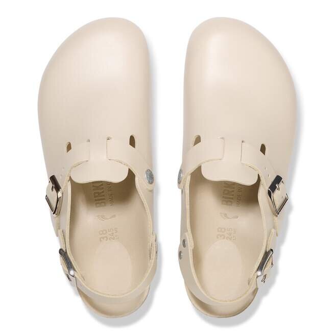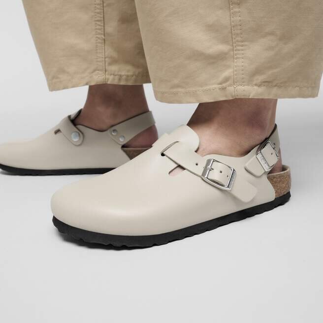 Birkenstock Tokio Clog är en variant av den klassiska Boston. Modellen kännetecknas av sitt ankelband och kan enkelt bäras när som helst på året. Den halvfodrade fotbädden är helt fodrad med mjukt Piumato-läder, vilket gör den exceptionellt bekväm. Övre delen är tillverkad av särskilt fint och högkvalitativt Amalfi-läder.