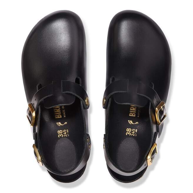 Birkenstock Tokio Träskor är en variant av den klassiska Boston. Modellen kännetecknas av sin ankelrem och kan enkelt bäras året runt. Den halvfodrade fotbädden är helt fodrad med mjukt Piumato-läder, vilket gör den exceptionellt bekväm. Övre delen är tillverkad av särskilt fint och högkvalitativt Amalfi-läder.