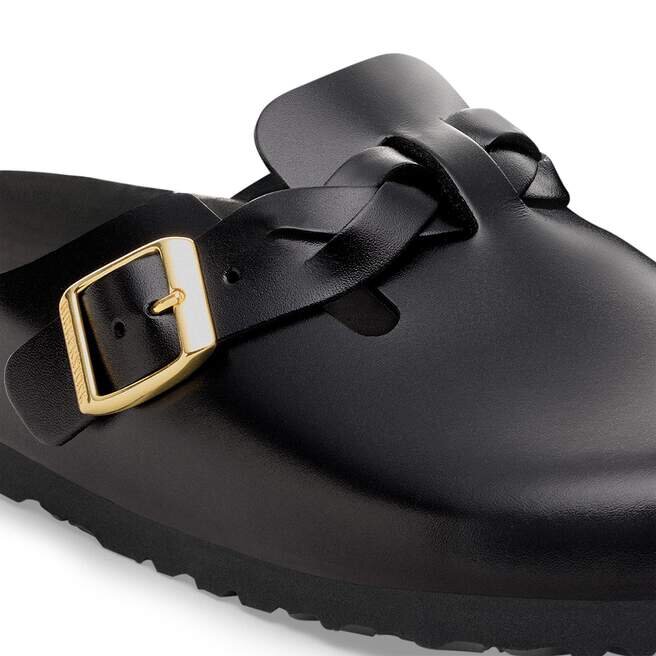 Birkenstock Boston är en verklig klassiker som enkelt kan bäras året runt. Den har en legendarisk status tack vare sin sofistikerade, individuellt justerbara design. Här kommer modellen med en speciell detalj: remmarna har ett flätat mönster, vilket gör dem till den perfekta matchningen för fashionabla boho-stilar. Den halvfodrade fotbädden är helt fodrad med mjukt Piumato-läder, vilket gör den exceptionellt bekväm. Övre delen är tillverkad av särskilt fint och högkvalitativt Amalfi-läder.
