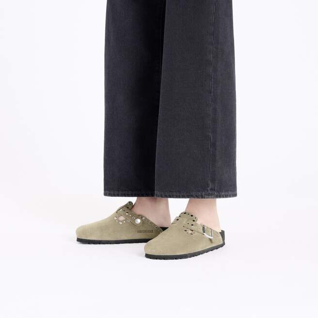 Boston Träskor är så genomgående bekväm att de har blivit en eftertraktad favorit året runt. Metallnitar pryder den klassiska mockaöverdelen i ett iögonfallande mönster, noggrant placerade för att undersidan ska vara slät och bekväm att bära. De vilar på en utsökt fotbädd helt fodrad med mjukt läder för en stödjande, lyxig känsla.