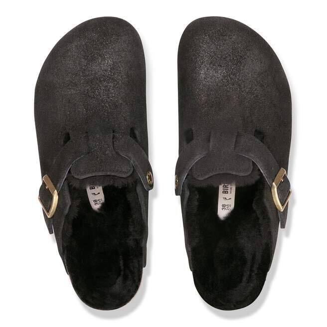 Boston-träskor gjord mysig för de kallare månaderna. Skimrande mocka fångar mjukt ljuset och för in känslan inuti. Modellen är helfodrad med äkta fårskinn, ända ner till den ursprungliga konturerade fotbädden. En mjuk, stödjande landning varje gång.