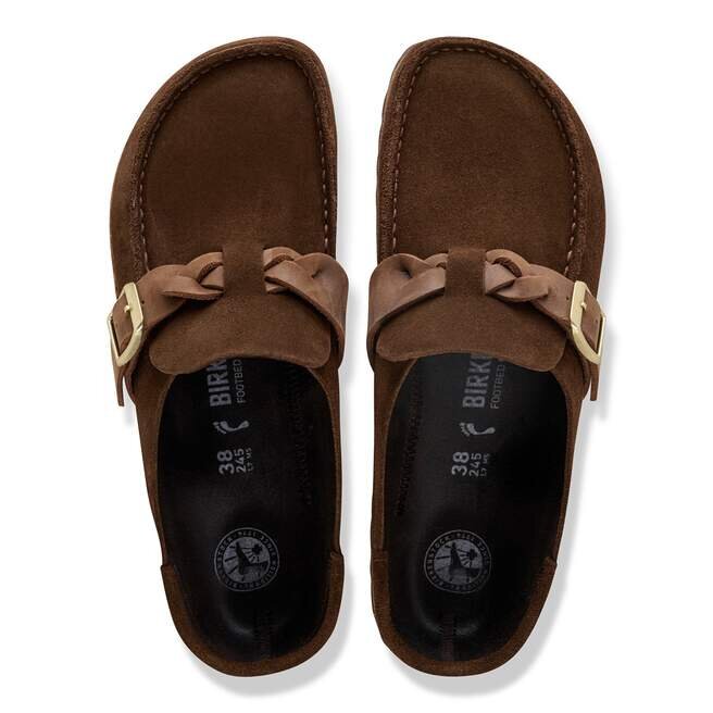 Klassiker med en twist. Buckley-träskon lyfter fram den traditionella strukturen med en flätad rem i oljat läder, utformad för att få mer karaktär ju mer den används. Med en originalformad fotbädd är det en träsko som känns helt unik för just dig.