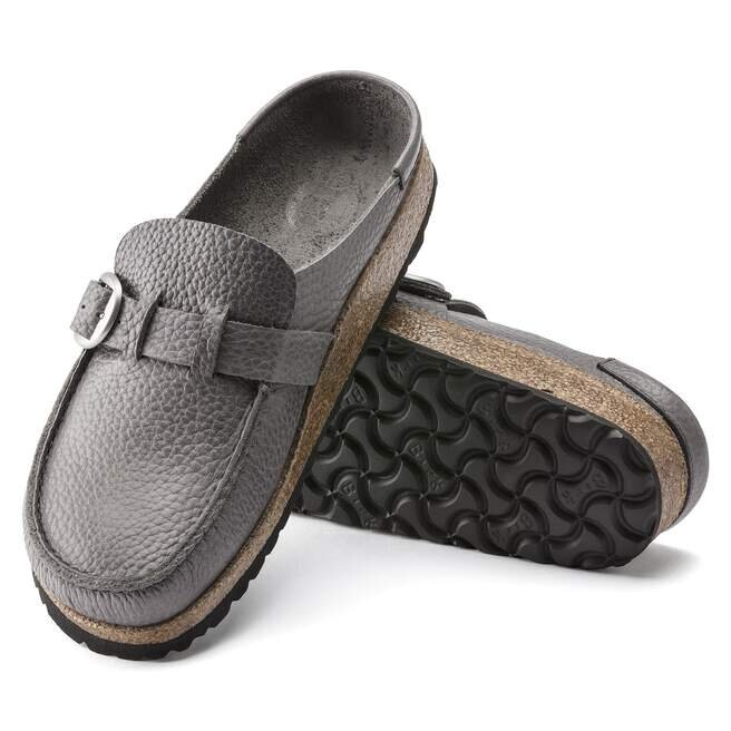 Birkenstock Buckley är en träsko i mockaskonstruktion som omedelbart känns igen som en äkta Birkenstock-original tack vare sin tjocka kork-sula. Den färgkoordinerade fotbädden fulländar skons sofistikerade utseende. Överdelen är tillverkad av högkvalitativt kornat läder.