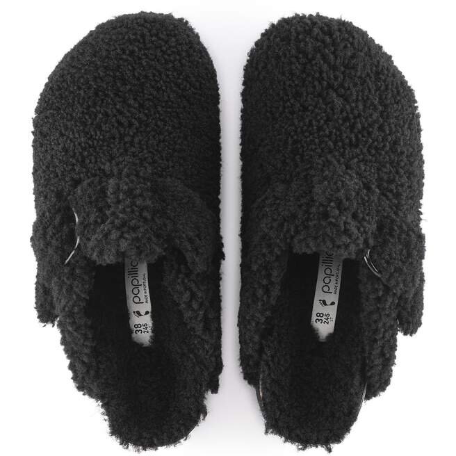 En vidareutveckling av den klassiska Boston-träskon. Här presenterar Papillio träskon med en trendig platåsula. Den avfasade kanten ger maximal gångkomfort. Denna version har varm, äkta fårskinnsfoder i teddy-stil och ett stort, elegant spänne som fulländar denna djärva, men supermysiga look. Ovansidan är tillverkad av äkta fårskinn i teddy-stil med mikrofiberfoder.