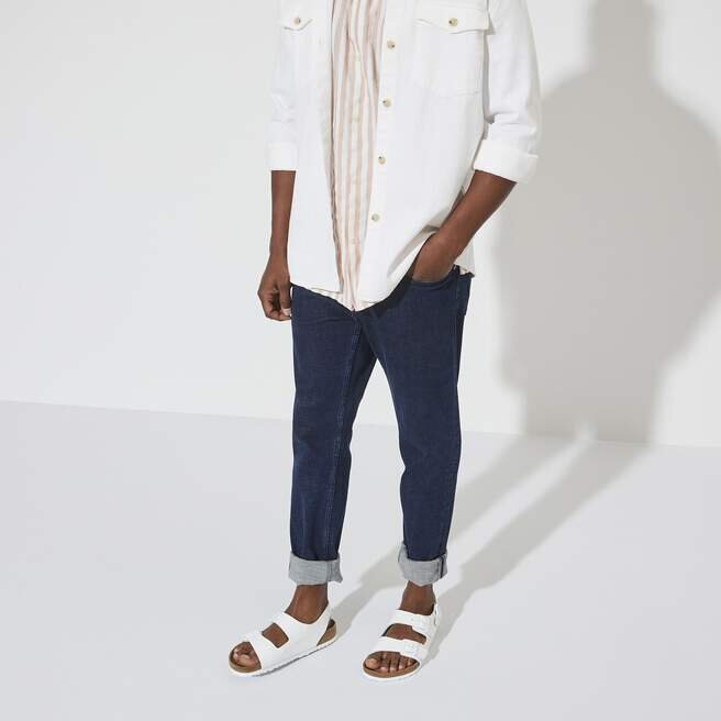 Naturläder känns igen på sin obehandlade yta. Birkenstock behandlar medvetet inte ytstrukturen och andra karakteristiska drag. Birkenstock använder robust läder med en tjocklek på 2,8 till 3,2 millimeter som överdel.